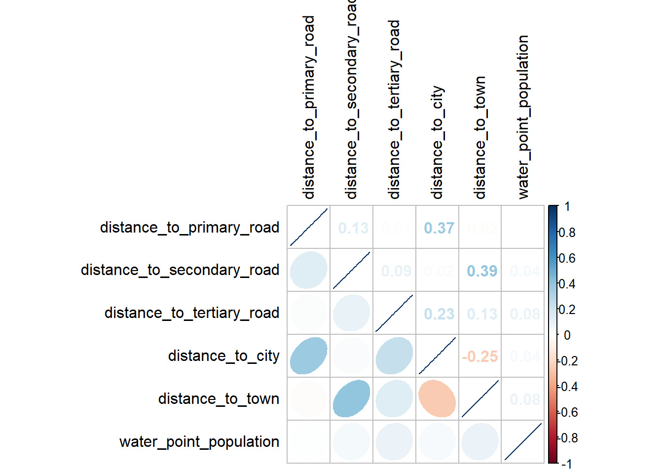 Independent variables:  distance_to_tertiary_road distance_to_city distance_to_town water_point_population local_population_1km usage_capacity is_urban water_source_clean